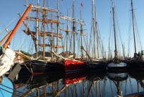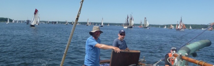 Der er trængsel i havnen i Flensburg når 126 tilmeldte skuder skal lægge til. Op til 12 skibe udenpå - en forhindringsbane bare at ligge som nr. 8 og skulle ind til kajen ! Flere danske skibe tager fra Flensborg direkte til TS Pinsestævne i Hobro.