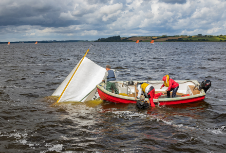 Inden sidste sejlads var ovre - var 2 både kæntret, en Hjarbæk-sjægt påsejlet med store skader med efterfølgende værftsbesøg til følge. Trods skaderne ”humpede” ”Nasen” fra Hjarbæk med skipper Ole Rømer i havn til en 1. plads i klassen ! Derudover var der 2 rorskader, 1 knækket mast og en knækket sprydstage. 2 besætninger fik brug for redningsveste – den ene – en norsk ”pigebesætning” tog det med godt humør. De norske piger påstod, at de altid var forberedt på sådan en situation – de sejler altid kun i det fineste blondeundertøj ! Redningsberedskabet bestod udover Sjægtelaugets egen følgebåd af Viborg FDF’ernes RIB båd og 4 lokale fartøjer – alle travlt beskæftigede sidst på dagen.